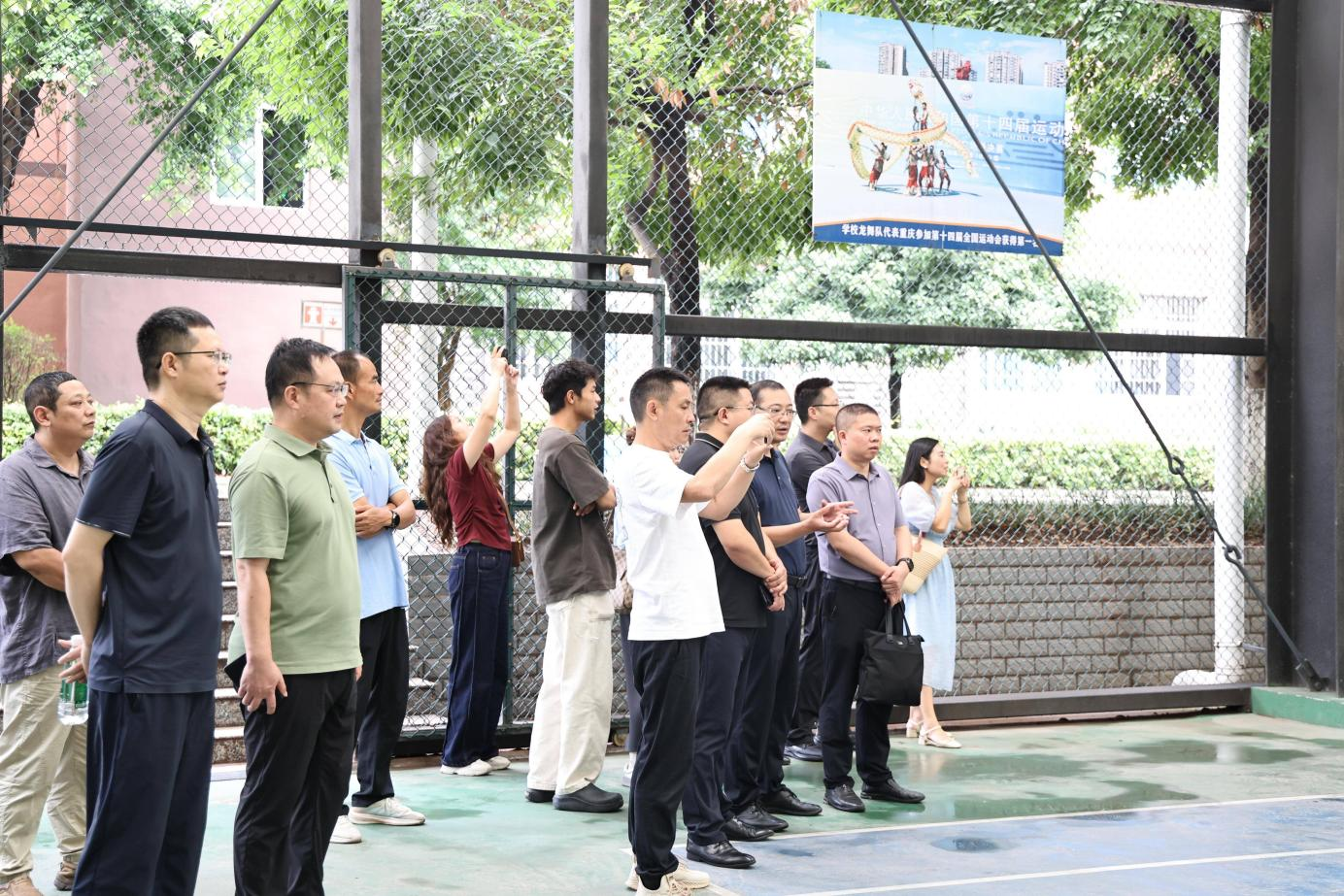 郭耀飞一行先后参观了我校校史馆、龙舞大师工作室等场所,深入了解学校发展历程和如何将文化传承理念融入不同发展阶段的办学实践等内容,对我校坚守文化传承初心的做法表示赞赏。交流组还现场观摩了我校龙舞队训练,详细询问技艺传承的教学方法、实训课程设置以及学习成果转化等情况。